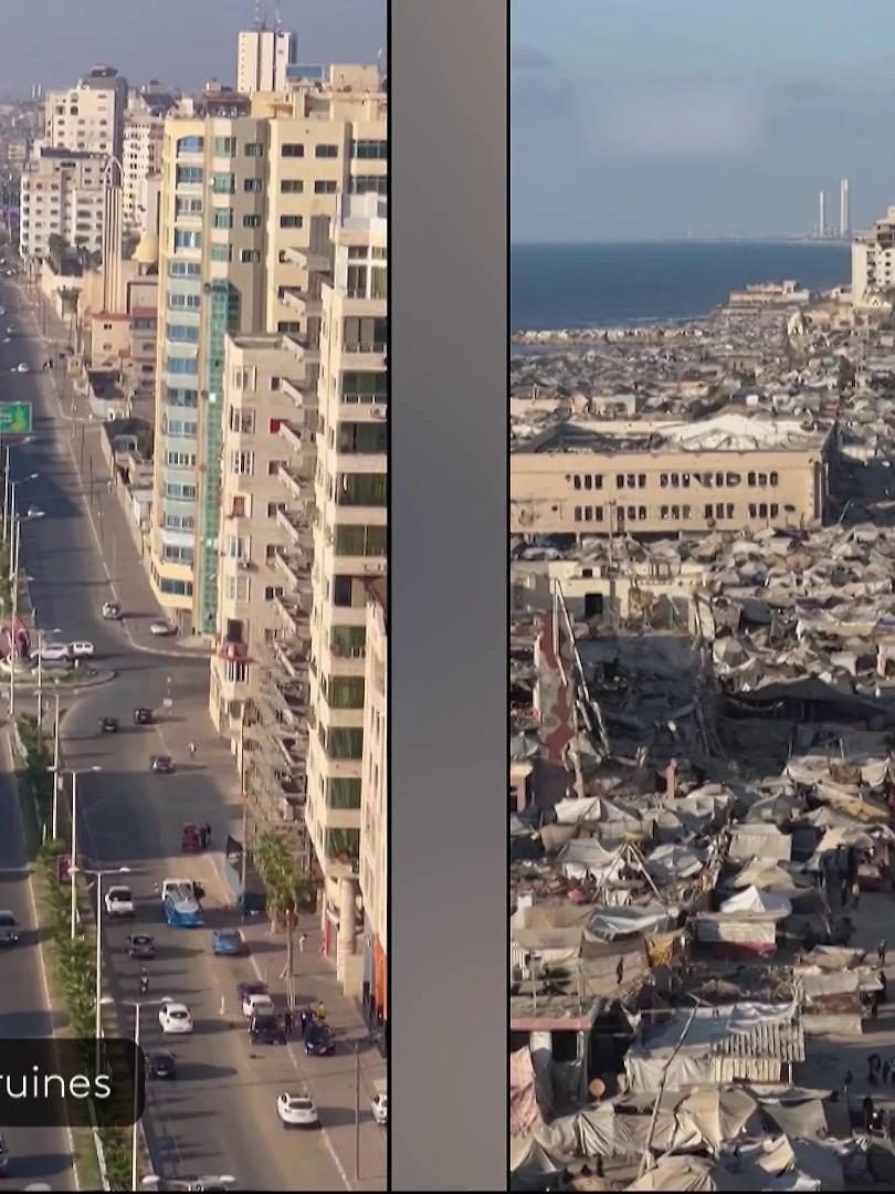 franceinfoIl y a 0 sec#PROCHE_ORIENT A Gaza, 78% des immeubles ont été détruits sous les bombes. Les images d’avant et d’après révèlent une métamorphose tragique : une ville autrefois vivante est aujourd'hui réduite en ruines. Entre destructions massives et exode forcé, les habitants survivent désormais dans des camps.