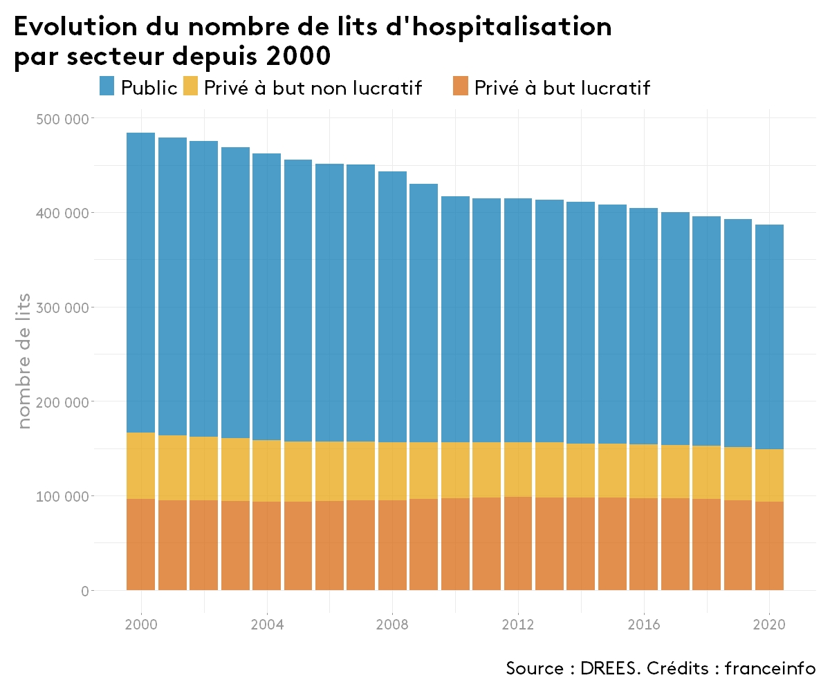 >> Comment la France a perdu près de 80 000 lits d'hospitalisation publics en vingt ans